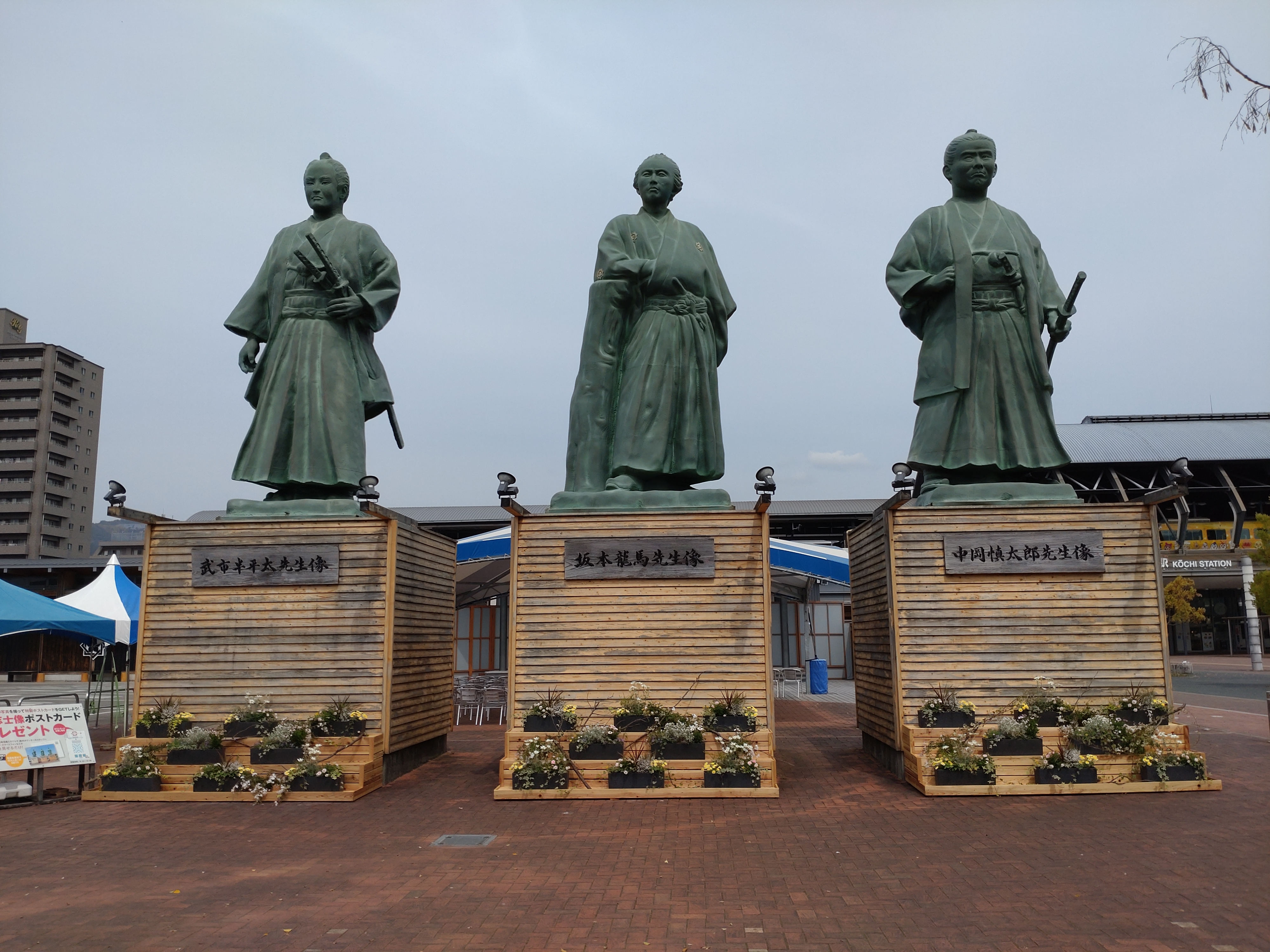武市半平太(左)、坂本龍馬(中央)、中岡慎太郎(右) -