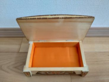 模様。ふたを開ければ、鮮やかなオレンジが大切なものを迎えます。 ペルシャ・オスマン風のデザインですが、生産はイン