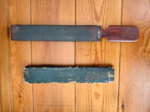 Monkhouse)社製で両面仕様の皮砥です。ストレートレザー(剃刀)の仕上げ研ぎに使用されていた本格的な理容道具で
